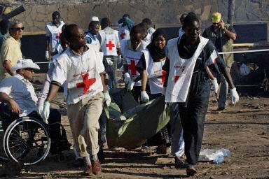 肯尼亞救援人員在天堂飯店現(xiàn)場(chǎng)搶救傷員