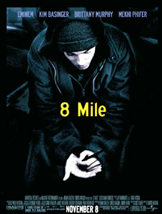 與一般音樂片不同的是,這部由前《洛城機密》導演柯蒂斯.漢森執(zhí)導的影片不是一部被拉長了的MTV,而是一部嚴肅的歌手傳記。故事發(fā)生在1995年的美國“汽車城”底特律,“8英里”就是該城一條主干道的名稱,這條街把底特律分成了黑白兩個世界。艾米納姆在電影里扮演了一個名叫吉米的白人說唱樂手。影片一開始,吉米準備上臺參加一個說唱歌手比賽,卻緊張地在后臺廁所里大吐特吐。當鏡頭終于隨著吉米來到舞臺上時,觀眾們立刻就會明白吉米為什么那么緊張了:臺下黑壓壓一片全是黑人!和吉米叫板的也是一個老黑,他一開口就咄咄逼人:“你是白人這沒什么,可你一拿起話筒就是個傻×了!”一句話就點明了主題:說唱樂一直都是美國城市黑人的民間音樂,你一個白人瞎起什么哄?