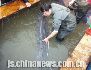 在談及中華鱘與白鱘時,危教授說:白鱘遠比中華鱘珍貴得多,此次南京發(fā)現的這條白鱘是世界上唯一一條活著的白鱘,這也是中國五十多年以來長江下游發(fā)現的最大的白鱘。