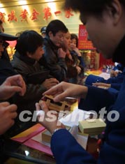 中新網(wǎng)12月19日電 今天,眾多消費(fèi)者翹首企盼的投資型黃金產(chǎn)品正式開(kāi)始銷售。在世界局勢(shì)不穩(wěn)、黃金交易價(jià)格節(jié)節(jié)上漲之際,投資型黃金產(chǎn)品的面世很可能將引發(fā)購(gòu)金熱潮。