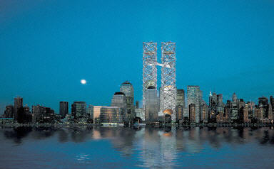 中新社紐約十二月十八日電(記者 趙海燕)與幾個月前公布的第一輪世貿(mào)重建方案正好相反,今天在紐約公布的第二輪共九個重建方案希望在廢墟上重建摩天大樓,不僅要比已經(jīng)倒塌的雙塔樓高,而且要成為世界上最高的樓。
