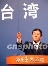 國務院臺灣事務辦公室二十五日在北京釣魚臺大酒店舉行新聞發(fā)布會,評價一年內兩岸關系的發(fā)展。圖為新聞發(fā)言人李維一先生在發(fā)布會上答記者問。作者:武仲林