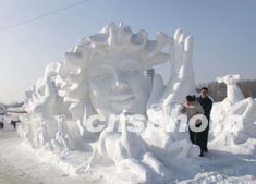 新年長(zhǎng)春凈月潭冰雪旅游節(jié)的冰雪游樂園共設(shè)立三十六個(gè)景區(qū),雪雕作品《春的使者》好似白雪仙子。作者:韓丹