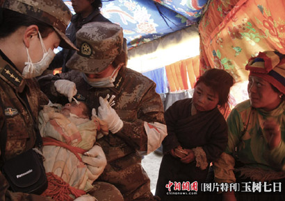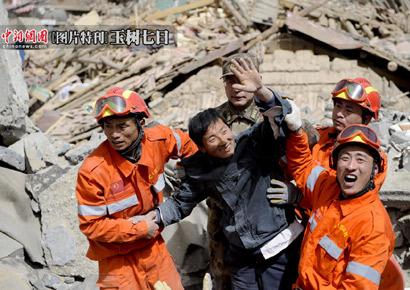 武警戰(zhàn)士在玉樹地震廢墟里救助被困民眾