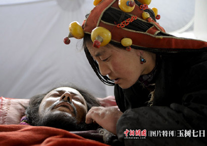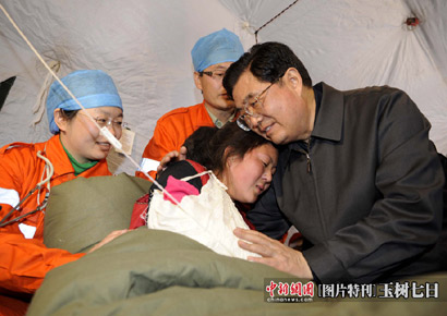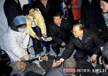 溫家寶在青海省玉樹縣玉樹自治州醫(yī)院看望受災民眾