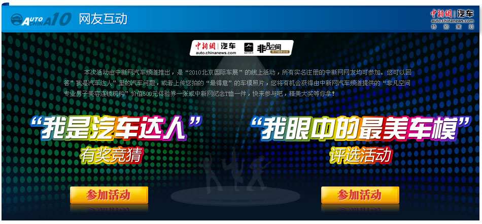以“暢想綠色未來”為主題的2010北京國際車展開幕,本屆北京車展規(guī)模為歷屆之最,同時全球首發(fā)車、概念車數(shù)量之多將創(chuàng)下國內(nèi)車展新紀錄。中新網(wǎng)汽車頻道將圍繞車展,第三只眼看車展,從價格發(fā)掘的角度,解讀中國車市,發(fā)掘繁華背后的車市興衰關鍵點。