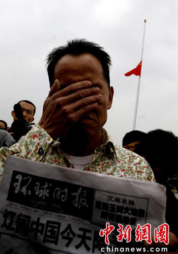圖:安徽池州各界為青海玉樹地震遇難同胞默哀