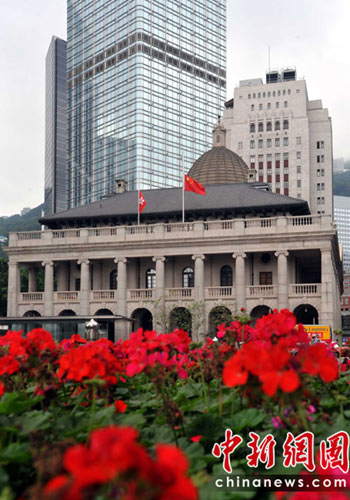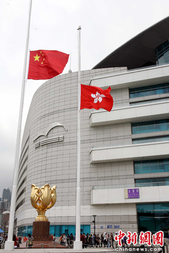 香港立法會大樓下半旗哀悼地震遇難同胞