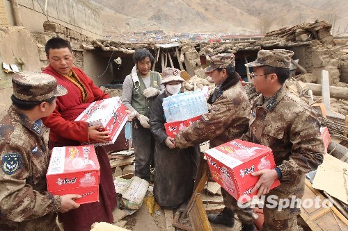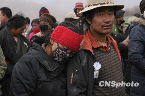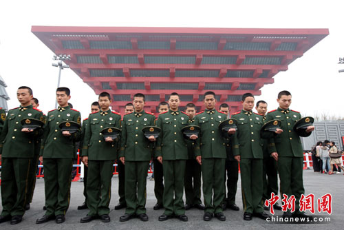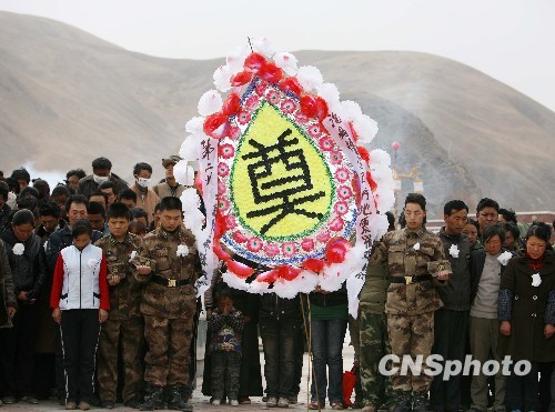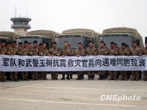 圖:玉樹機場抗震救災(zāi)官兵向遇難同胞致哀