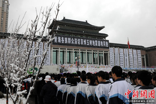 圖:青海玉樹為遇難同胞舉行哀悼活動