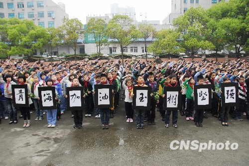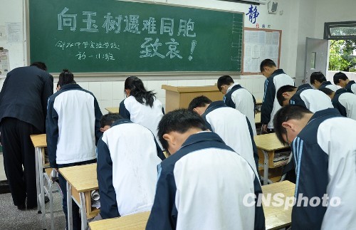 四川廣安師生向玉樹地震中遇難同胞致哀