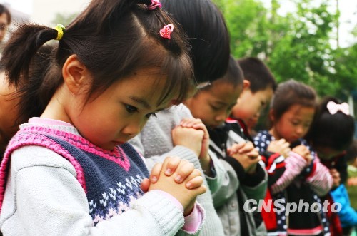 圖:河北小學生為玉樹地震遇難同胞祈禱