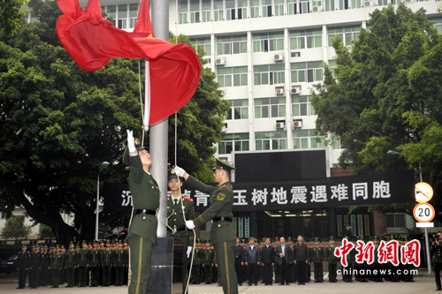 圖:國務(wù)院新聞辦降半旗為玉樹遇難者志哀