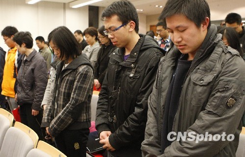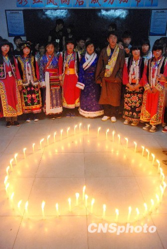 揚州藏族大學生為玉樹地震遇難同胞默哀祈福