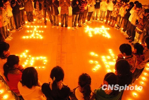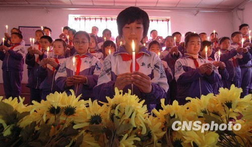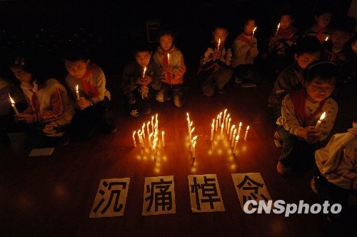 重慶小學生點燃蠟燭為玉樹遇難者默哀