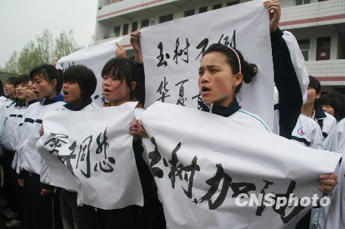 圖:河南漯河中學生哀悼玉樹地震遇難者