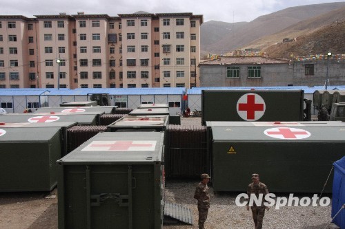 圖:濟南軍區(qū)野戰(zhàn)方艙醫(yī)院奮戰(zhàn)玉樹地震災(zāi)區(qū)