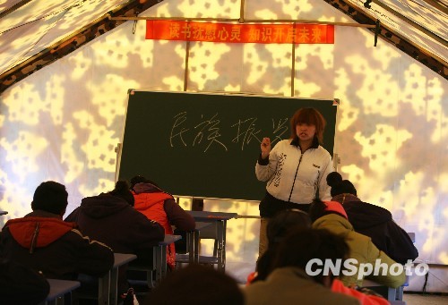 圖:玉樹災(zāi)區(qū)高考帳篷學校復(fù)課