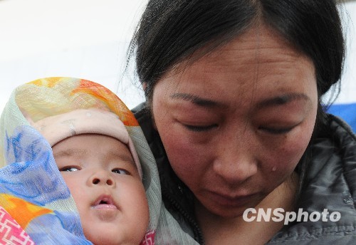 全國哀悼日:玉樹幸存母子倆流淚致哀