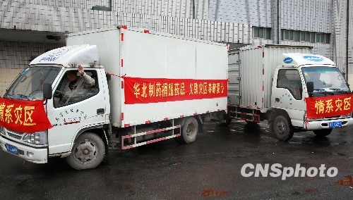 圖:華藥價值百萬元藥品雨中急赴玉樹災(zāi)區(qū)