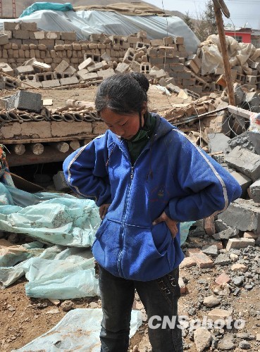 全國哀悼日:幸存的玉樹姑娘在自家廢墟上致哀