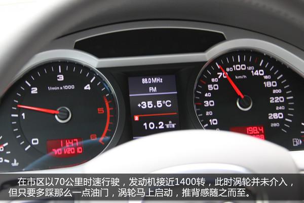 人多車多,廣州特色,都城已經(jīng)成為廣州人生活的一部分。面的蠕動似的前進(jìn),發(fā)動機(jī)轉(zhuǎn)速僅比怠速高一點(diǎn)點(diǎn)即可驅(qū)動車輛前進(jìn)(約1200轉(zhuǎn)/分鐘),能把轉(zhuǎn)速控制在如此低的水平,正是柴油發(fā)動機(jī)低速大扭矩的體現(xiàn)。但在這樣的環(huán)境中,并沒多少機(jī)會能給渦輪增壓系統(tǒng)發(fā)揮,渦輪打開的轉(zhuǎn)速為1400轉(zhuǎn)/分鐘,憋屈著。由于轉(zhuǎn)速較低,加上奧迪出色的隔音做工,車內(nèi)非常安靜,聽著BOSE音響美妙的樂章,就算路上再堵也能保持心情舒暢。