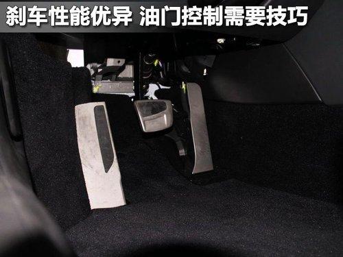 蘭博基尼GallardoLP 550-2剎車油門(mén)踏板采用鋁合金設(shè)計(jì),帶防滑墊非常的人性化,只是感覺(jué)踏板區(qū)域有效狹窄。蘭博基尼Gallardo LP 550-2的制動(dòng)性能非常出色,油門(mén)力度則有沉重。