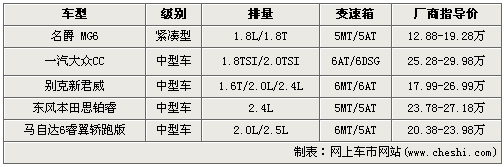 在國(guó)內(nèi)汽車(chē)市場(chǎng)中,最先開(kāi)創(chuàng)轎跑車(chē)概念是馬自達(dá)6轎跑版,它的引進(jìn)過(guò)程讓國(guó)人第一次感受到了4門(mén)轎跑車(chē)的獨(dú)特魅力,同時(shí)也得到了很好的市場(chǎng)反應(yīng)。在之后的一段時(shí)間中,合資汽車(chē)廠商紛紛推出類(lèi)似車(chē)型,例如別克換代新君威、東風(fēng)本田思鉑銳、以及剛剛上市的大眾CC。除此以外,自主企業(yè)上海汽車(chē)名爵品牌也推出了MG6車(chē)型,雖然定位為緊湊級(jí)別車(chē)型,但4門(mén)掀背的設(shè)計(jì)讓、2705mm的長(zhǎng)軸距它也理所當(dāng)然的被列入了轎跑車(chē)的行列。
