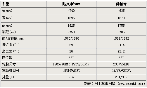 在車身尺寸上,江鈴陸風(fēng)SUV長(zhǎng)4740mm、寬1895mm、高1825mm,軸距為2750mm,與科帕奇相比略大一些。在比較重要的越野指標(biāo)上,陸風(fēng)SUV接近角為29度、離去角26度。在動(dòng)力上,陸風(fēng)SUV搭載2.4L四缸柴油機(jī),有5座和7座兩種內(nèi)飾設(shè)計(jì)。