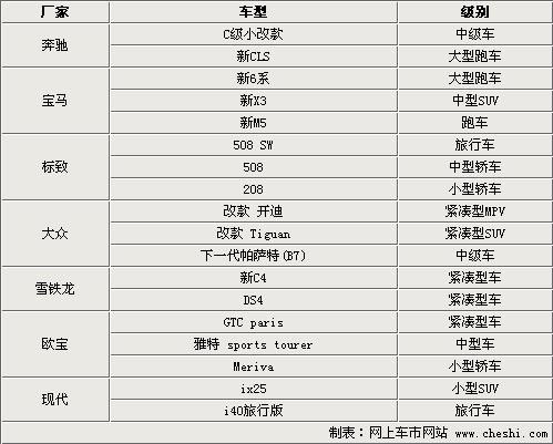 以奔馳、寶馬和標(biāo)致為主的歐系品牌在此次巴黎車展上將甙類多款車型的首發(fā),在上述表格中我們所列的車型都是從未在其他車展中亮相過的,屬于全球首發(fā)。其中奔馳的改款CLS、寶馬的新X3,在不久的將來肯定會成為奔馳中國和寶馬中國所引進(jìn)的全新進(jìn)口車型,在中國市場銷售。