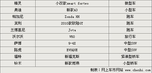 在上述表格中大部分廠家都是歐洲的豪華品牌或是相對小眾化的品牌,例如薩博和沃爾沃。這兩個品牌在中國市場的表現(xiàn)都不如其他歐系品牌,但是在歐洲市場中它們的銷售情況還是不錯的。2010年的巴黎車展沃爾沃將會帶來S60的旅行版車型V60,旅行款車型是歐洲消費(fèi)者較為喜歡的款式能夠兼顧實(shí)用性和舒適性。另外,賓利、蘭博基尼、帕加尼也紛紛準(zhǔn)備帶來旗下的全新跑車,贏得全球富豪們的目光。
