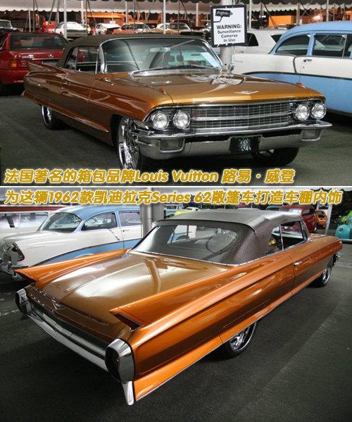 價值連城的名貴老爺車與著名的箱包制造商奢侈品牌法國LV能碰撞出什么火花?答案就在本文中!近日,在美國弗羅里達州奧蘭治城舉辦的2010 Barrett-Jackson收藏汽車拍賣會上,一輛頂棚與內飾由法國著名的Louis Vuitton 路易·威登LV打造的1962款凱迪拉克Series 62敞篷車成為全場最閃亮的明星。這款車被高價搶拍買走,那么為什么這款老爺車究竟有著怎樣的風采?下面讓我們一同來了解下。