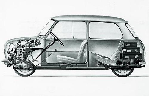 1959年MINI的截面圖,展示獨(dú)特的空間利用率