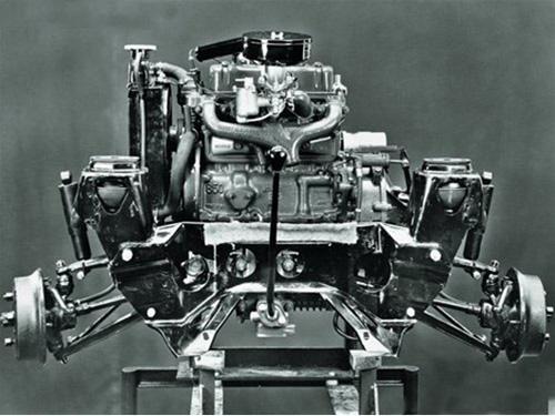 其創(chuàng)新就是將散熱器安置在了車的左側(cè),從而在狹小的發(fā)動(dòng)機(jī)艙內(nèi)能夠?qū)⑸犸L(fēng)扇保留。這種設(shè)計(jì)大大節(jié)省了車身長(zhǎng)度,但這樣做面臨的缺點(diǎn)就是吹向散熱器的空氣是已經(jīng)在流經(jīng)發(fā)動(dòng)機(jī)時(shí)被加熱過(guò)了。