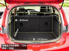 兩廂進口馬自達3的承載能力還是值得認可的,座椅全部正常打開的狀態(tài)下后備廂容積734L,可以輕松放入折疊自行車,看上去倒是別有情趣,后排座椅放倒后進深達到了1620mm,但是地板并不完全水平,有一個小小的落差,不過細節(jié)處理的比較細膩。