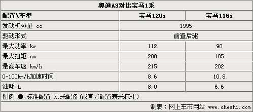 寶馬116i與奧迪A3 1.4T動(dòng)力相近 更低定位意味著價(jià)位更低
