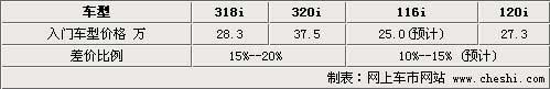 其實(shí)BMW針對(duì)相同引擎進(jìn)行功率扭矩的不同調(diào)教也是有先例的,目前國(guó)內(nèi)銷售的318i和320i就屬于相同引擎排量的不同動(dòng)力調(diào)教,巧合的是這兩款3系所使用的也是1系120i的這款4缸自然進(jìn)氣引擎。從價(jià)位上來說3系的318i和320i之間的定價(jià)差距在15%--20%左右,那么未來BMW若引進(jìn)1系的116i車款,其官方定價(jià)同樣會(huì)比現(xiàn)在的120i更低。根據(jù)BMW 針對(duì)318i和320i的定價(jià)差異,116i與120i的定價(jià)差距大致會(huì)在10%--15%之間,也就是25萬元左右。