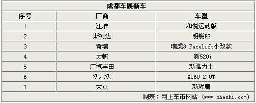 西部最具規(guī)模和影響力的2010第十三屆成都國(guó)際車展,將于9月18日-24日在成都世紀(jì)城新國(guó)際會(huì)展中心隆重舉行,主題為“綠色科技 樂(lè)駕成都”。雖然成都車展的影響力不及北京、上海、廣州,但西部尤其是四川汽車市場(chǎng)需求相當(dāng)旺盛,在本屆車展上將有7款不同類型的新車首發(fā)。