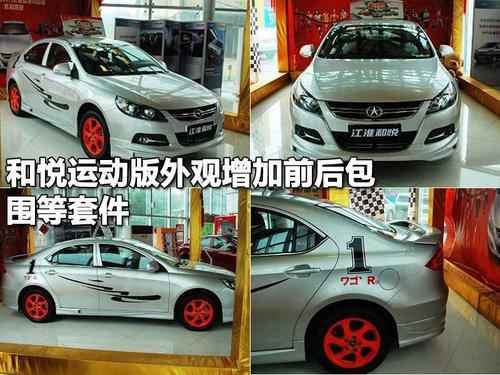 和悅運(yùn)動(dòng)版的外形還是具有相當(dāng)?shù)挠H和力,但進(jìn)行了外觀改裝后,顯得運(yùn)動(dòng)味十足,加了前包圍的運(yùn)動(dòng)版前臉給人更加銳利的感覺(jué)。和悅的前臉采用雙“U”型設(shè)計(jì),端莊大氣,車身側(cè)面,寬大的后視鏡有些夸張,改裝的紅色鋁合金輪轂運(yùn)動(dòng)感很強(qiáng)。側(cè)裙加裝了運(yùn)動(dòng)包圍,另外除了尾部的運(yùn)動(dòng)包圍,還增加了一個(gè)運(yùn)動(dòng)導(dǎo)流板。