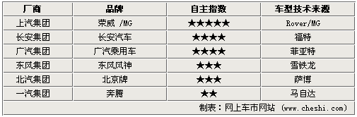 從上表可以看出,坐擁大眾和通用兩個(gè)合資品牌的上汽,無疑是自主之路走得最好的,在買斷ROVER先期打造了榮威750、550等車型,而后續(xù)推出的則是全新技術(shù)的車款比如350。而廣汽作為新的加入者,近日下線了傳祺新車,雖然新車源自菲亞特旗下的阿爾法羅密歐,但還是進(jìn)行了不少改進(jìn),并沒有完全照搬過來。而獲得兩星的一汽集團(tuán),其奔騰系列車型B50、B70依然是來源馬自達(dá)6,經(jīng)過了這么年的發(fā)展,僅僅是換個(gè)外觀就宣稱自主研發(fā)是很難讓人接受的,一汽集團(tuán)還需努力捍衛(wèi)老大的地位。