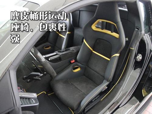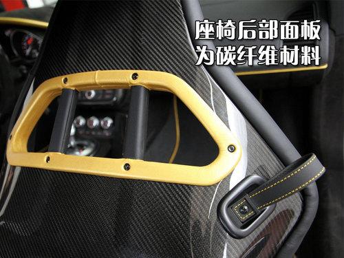 車廂內(nèi)飾運(yùn)用灰色和金色雙色搭配,桶形運(yùn)動座椅為PPI特別定制,主要乘坐區(qū)域?yàn)轺淦ご蛟。特別值得一提的是座椅后部支撐面板也是碳纖維材料制成,中控和方向盤等地隨處可見碳纖維裝飾面板。
