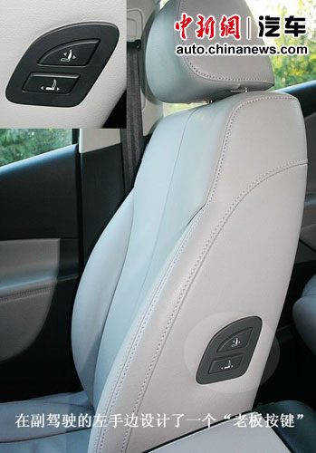 邁騰在副駕駛座椅上增加了后排客人控制按鍵,俗稱“老板鍵”,坐在后排的人可以輕松控制座椅的前后距離以及靠背角度,從而為自己找到更舒服的乘坐姿勢。這對于商務用途來說非常的必要。