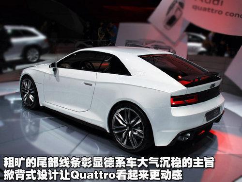 由于采用了掀背式設(shè)計,奧迪Quattro概念車尾部線條十分緊湊。與車頭的線條設(shè)計完全不同,渾厚敦實的的造型給人很強(qiáng)烈的安全感。
