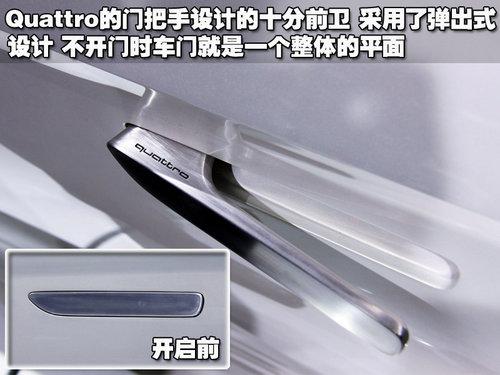 奧迪Quattro概念車的車門把手設(shè)計是全車另一大亮點,在沒有使用的情況下,它會隱藏在車門內(nèi)部,讓整個車門看起來是一個整體,沒有一點突出。當(dāng)需要開門的時候,只需按一下靠前的位置,車門把手會彈出,上車之后把手會自己閉合到起始位置。