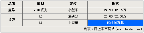 由于定位明顯低于同門師兄奧迪新A3,而A3的起售價格為26.80萬起,競爭對手MINI系列價格區(qū)間出現在24.90-42.95萬內,起價低于A3系列車型的最低售價。綜合以上兩個因素來推斷,奧迪全新A1車型有可能以20萬元入市,如果實現,奧迪這個國際豪華品牌在國內的產品價格將會再創(chuàng)新低。