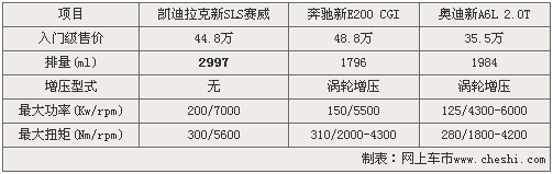 縱觀凱迪拉克新SLS賽威競爭品牌的入門級車型奔馳E200 CGI和奧迪A6L 2.0T,其入門車型均分別搭載1.8T和2.0T的小排量和增壓發(fā)動機,并且國產(chǎn)新A6L的售價為35.5萬。而奔馳E200 CGI為原裝進口車型,雖然售價為48.8萬元,但最高優(yōu)惠時可達10萬元,國產(chǎn)后售價將更低。由于各品牌的入門級車型均為走量車型,所以凱迪拉克新SLS賽威2.0T車型的推出已迫在眉睫。