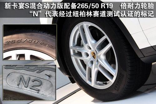 新卡宴混合動(dòng)力版車型配備了雙五幅式的輪圈,在造型方面突出運(yùn)動(dòng)感的設(shè)計(jì),與之搭配的是265/50 R19倍耐力輪胎,輪胎中所涉及的N2字樣則表示,該輪胎已經(jīng)過紐柏林賽道測試的認(rèn)證,這在一般品牌車型中可是很少見到的。