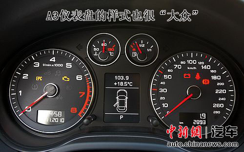 和奧迪大部分車型的一體式儀表和中控臺比起來,A3儀表盤的樣式也很“大眾”。雖然沒有MMI系統(tǒng),但行車電腦功能強大依舊。