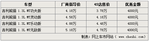 熊貓作為吉利全球鷹品牌下的代表產品,在去年上市后受到了眾多消費者的青睞。網(wǎng)上車市網(wǎng)站了解到,在自動檔車型上市后,在售的手動車型也將全面升級,將不受市場歡迎的負壓式后窗全面升級為電動升降后窗。而價格上沒有任何變化,經銷商處全系仍可給出4000元優(yōu)惠。詳情如下: