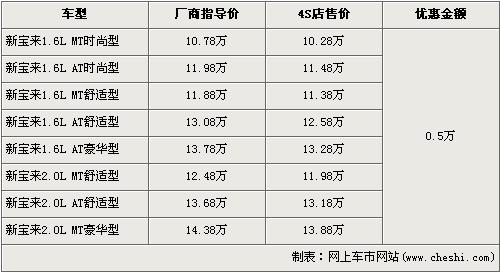 新寶來是一汽大眾于去年10月上市的新車型,新寶來共分為1.6L及2.0L兩個排量,全系車型多達(dá)7個,價格區(qū)間為10.78萬元-14.38萬元。近期根據(jù)網(wǎng)上車市價格監(jiān)測系統(tǒng)顯示,新寶來全系優(yōu)惠5000元,具體車型價格詳情請看下表: